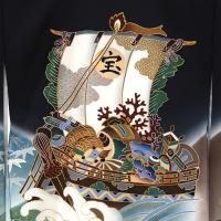 刺繍が船の帆などを縁取り煌びやかに輝き、大海原を進む船が大変豪快で格式高い柄行です。