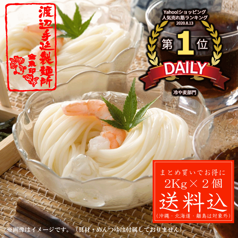 【まとめ買いでお得な送料込!】金魚印 手延べ麺 冷麦 ひやむぎ お得用2キロ入り 2箱 【渡辺製麺所 四日市大矢知】 ※クール便と同梱不可