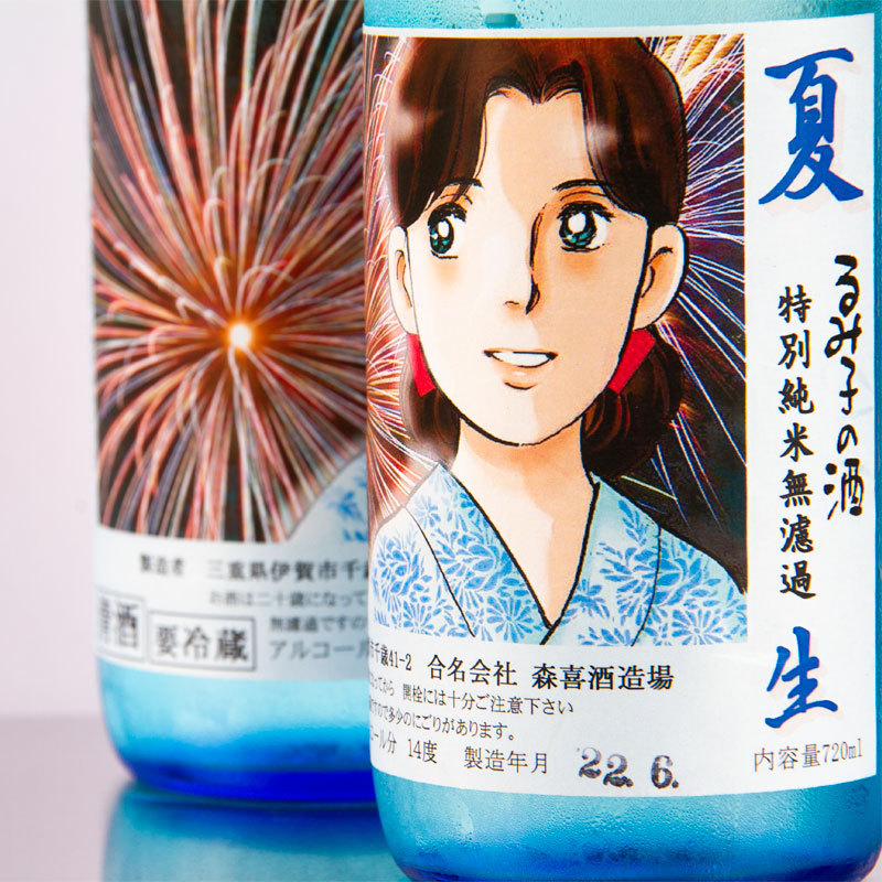 純米酒にこだわりを持ち、三重県伊賀の地でお酒造りをされている森喜酒造場。代表銘柄『るみ子の酒』は奥様の森喜るみ子さんの名を取り、尾瀬あきら氏が描くそのラベルで『るみ子の酒』として誕生しました。