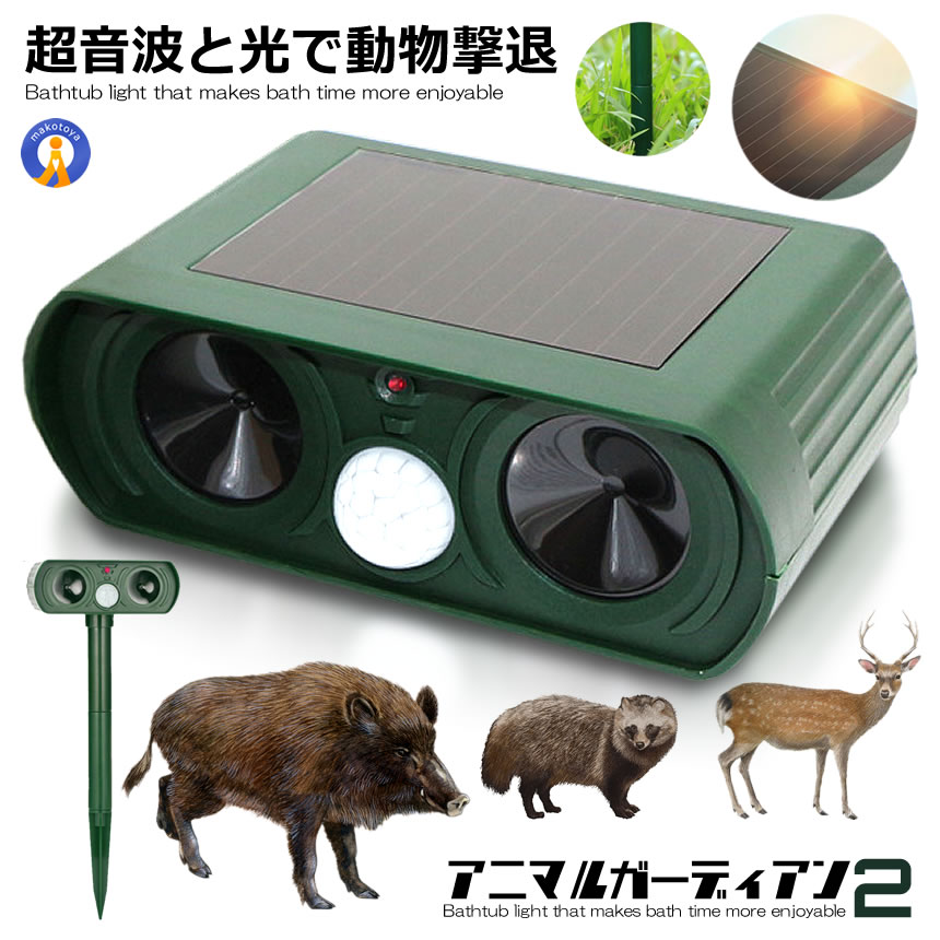 動物撃退器 LEDライト 超音波 猫よけ カラス ネズミ 対策 害獣駆除 動物駆除 防水 広範囲感知 ソーラー式 電源不要 省エネ アニマルガーディアン2 ANIGAR02