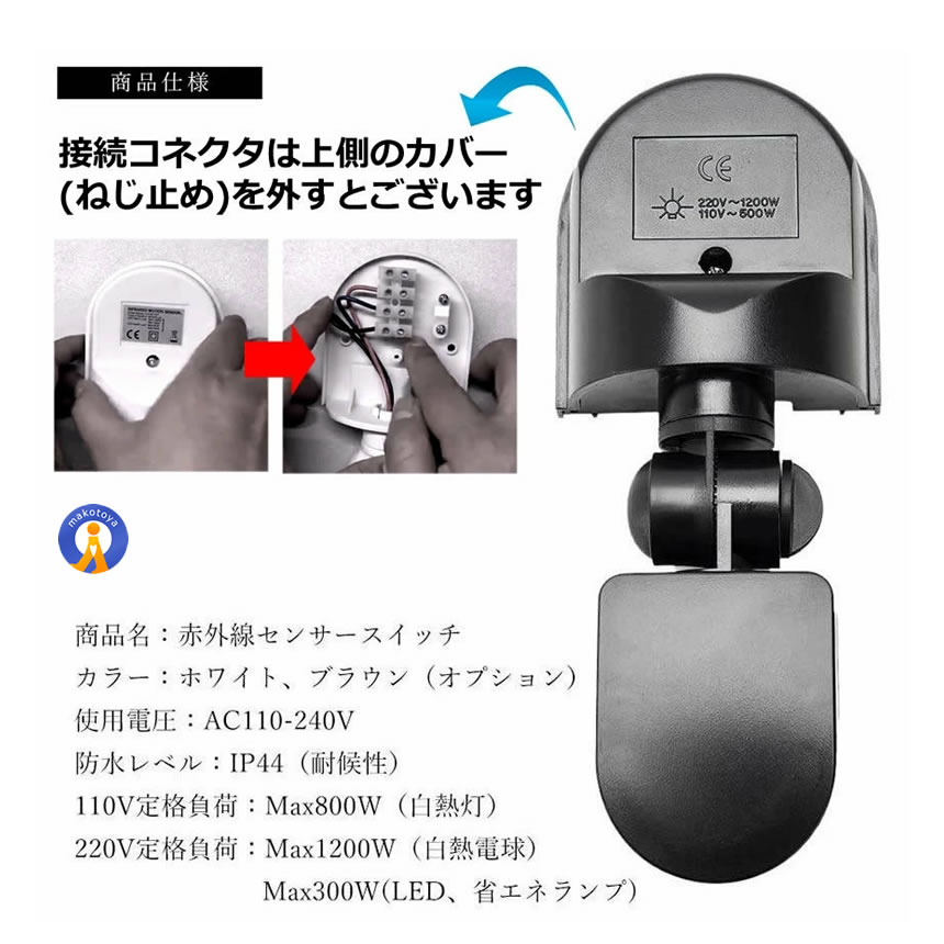 赤外線センサー スイッチ 後付け 人感センサー モーションセンサー 補修部品 屋外 屋内 動きセンサー 防水仕様 LED ファン カーポート 駐車場 防犯 REDSENNSA