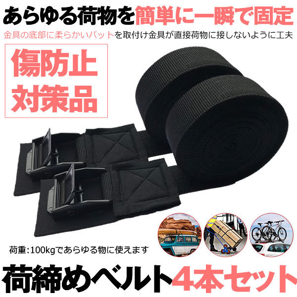 4本セット 荷締めベルト 3m 荷物 固定 スーツケース 地震 災害対策 家具固定 黒 シンプル キャリア アウトドア 簡単固定 荷づくり キャンプ 荷締め KIZNIRU