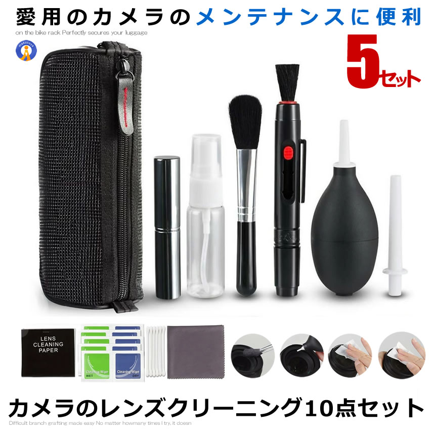 5セット カメラクリーニングキット 10点セット メンテナンス レンズ クリーニング ペン ブロアー ダストブラシ クロス ワイプ スプレー ポーチ ドローン MA-137