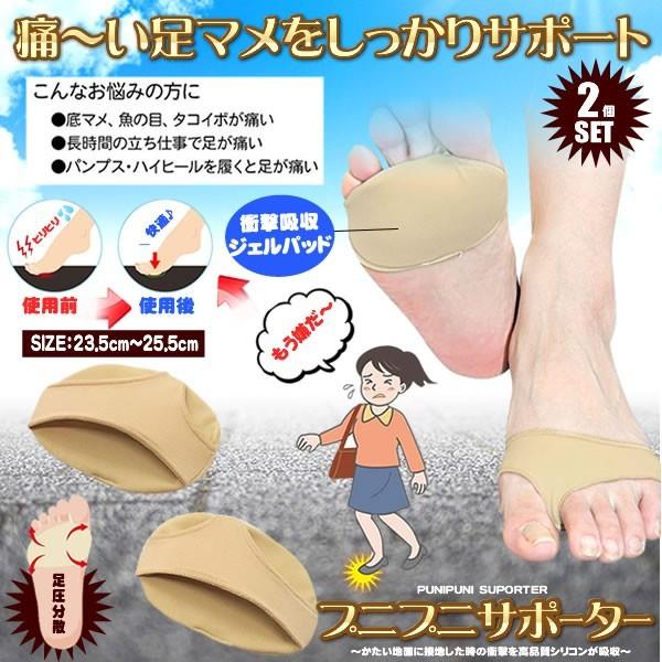 足裏保護パッド Mサイズ 2個セット 痛み 緩和 中足骨パッド ジェル サポーター まめ 足マメ 魚の目 タコ軽減 シリコン 衝撃吸収 足裏クッション PUNIPUNI-M