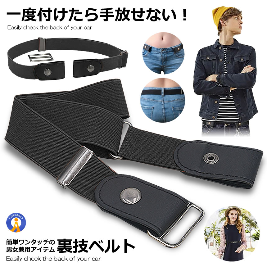 デザイン :バックルが無いのでお腹の辺りがポッコリしません!ベルトループ(ベルト通し)にゴムベルトの両端をパチンととめるだけ、バックルが無い為、ウエストを(約-3cm)スリムに、細く見せる事が出来ます。