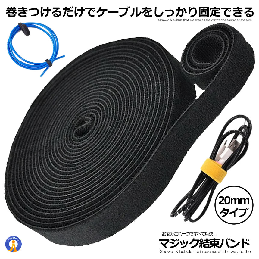 マジック結束バンド 20mm マジックテープ 切れる 黒 配線 コード固定 収納 周辺機器 パソコン 配線整理 植物 ケーブル固定 配線まとめ 線収納 MAZIKESO-20