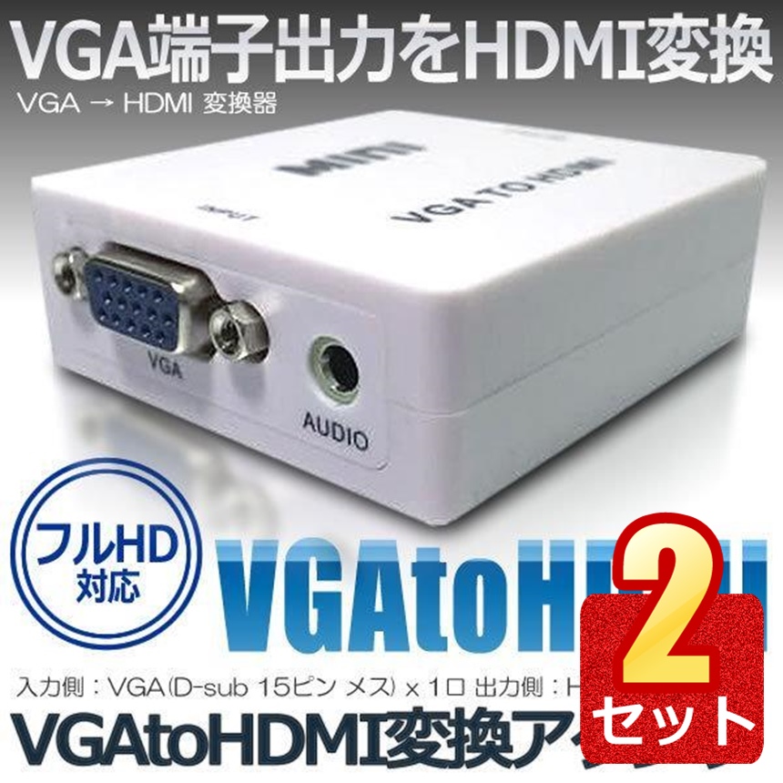 2個セット VGA HDMI 変換 アダプタ 電源不要 変換器 コネクタ モニター プロジェクター 変換 入力 出力 VGAtoHDMI VGHDMIIB
