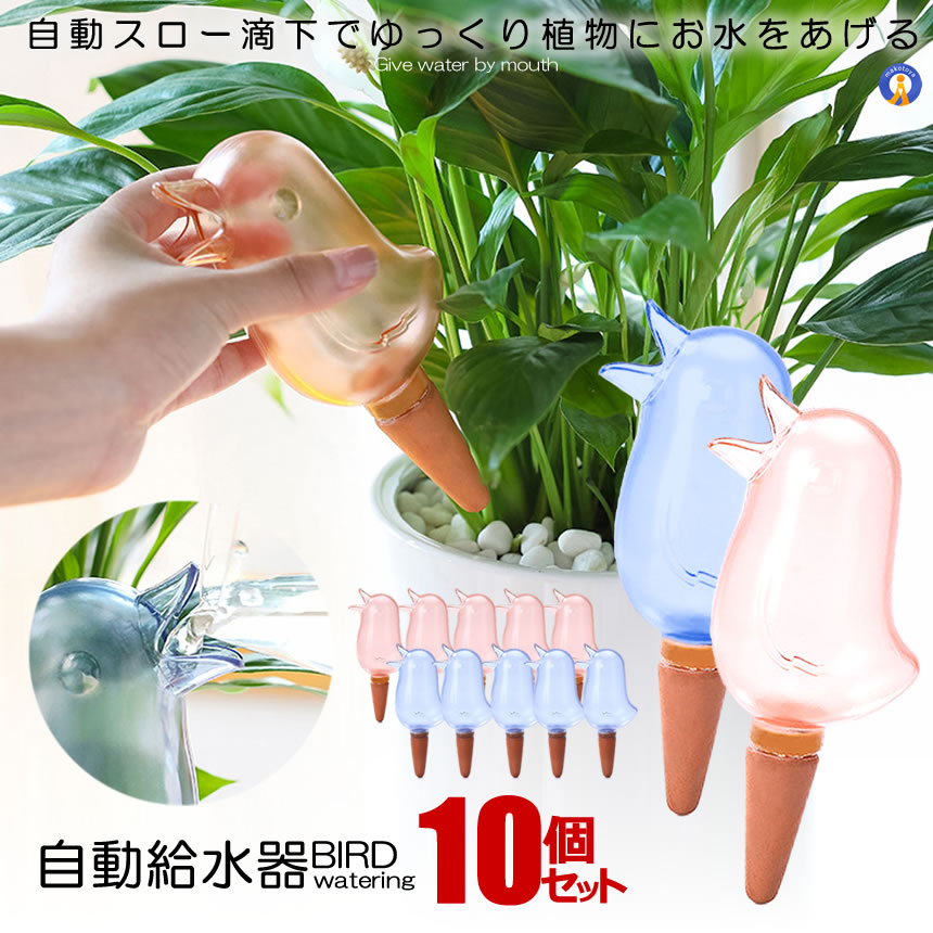 5セット 水やりキャップ 水やり器 給水器 2色セット 鳥型 自動 給水キャップ 観葉植物 散水ツール 鉢植え 植物 園芸 ガーデニング 留守用 2-BIRDMIZU