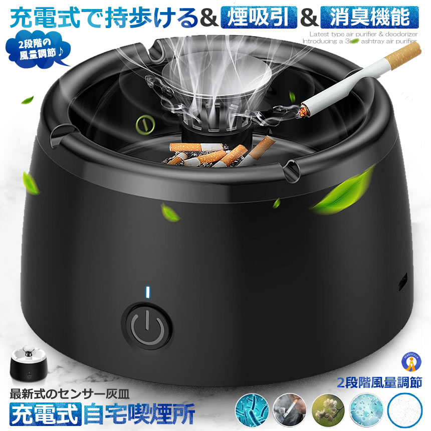 充電式 スモークレス灰皿 空気清浄機 脱臭機 マイナスイオン発生器 軽量 フィルタ 2階段風量切替 日本語説明書付き 持ち歩ける お手入れ簡単 喫煙 HAIZARA