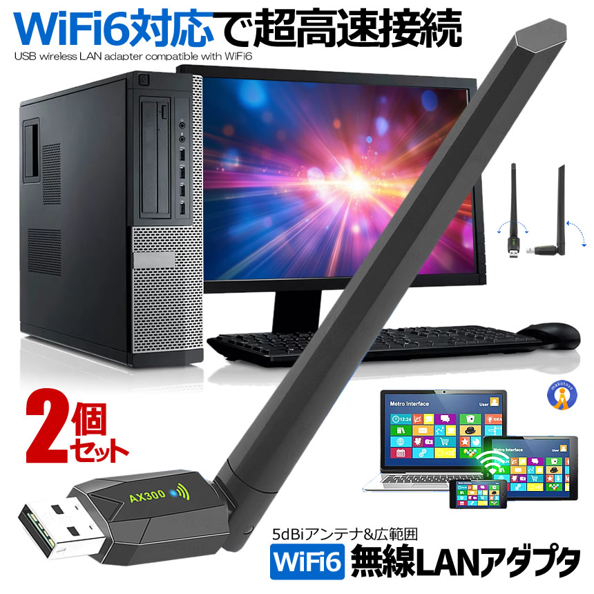 2個セット WiFi 無線LAN 子機 WiFi6 286Mbps USB2.0 アダプタ 2in1 5dBi デュアルバンド 2.4G 高速通信 WIFI666
