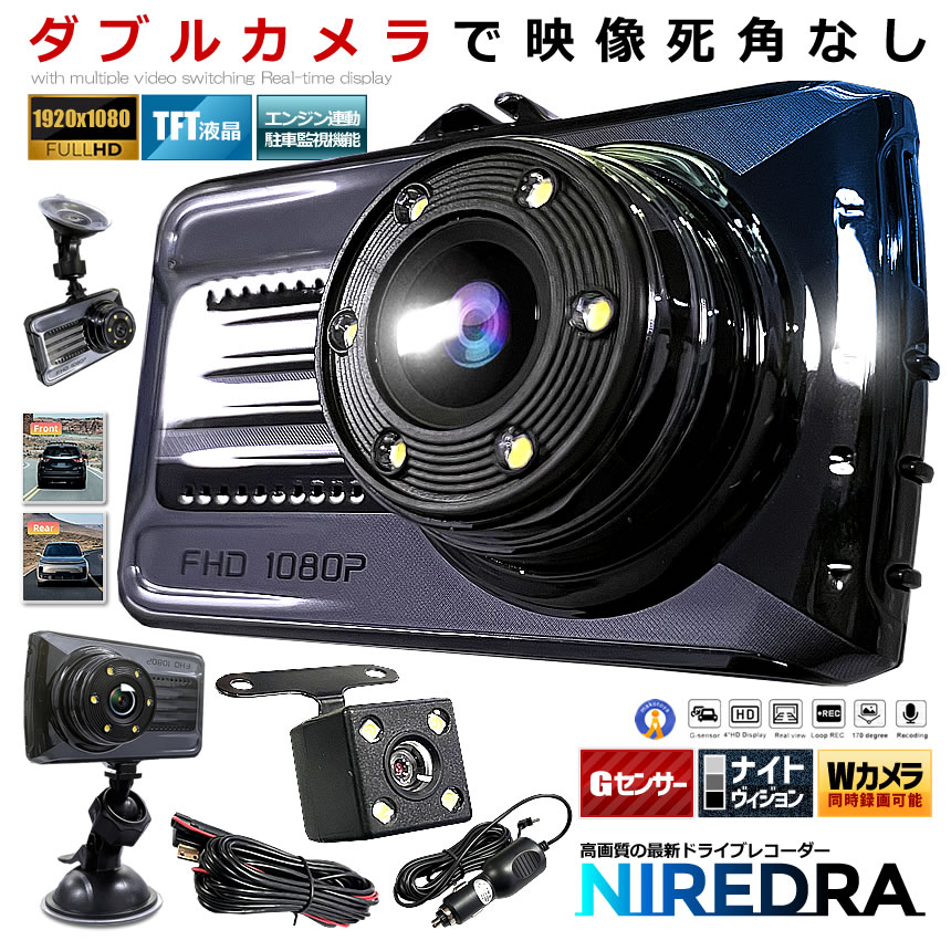 ドライブレコーダー 前後 ダブルカメラ 録画 液晶 リアカメラ 2025年 シガー おしゃれ カー用品 NIREDORA