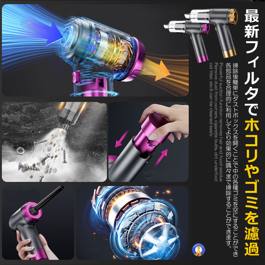 ハンディクリーナー 2個セット コードレス エアダスター 車載掃除機 12000pa 強吸引 掃除機 USB充電式 パソコン 掃除 コンパクト 電動エアーポンプ機能 2025SOJI