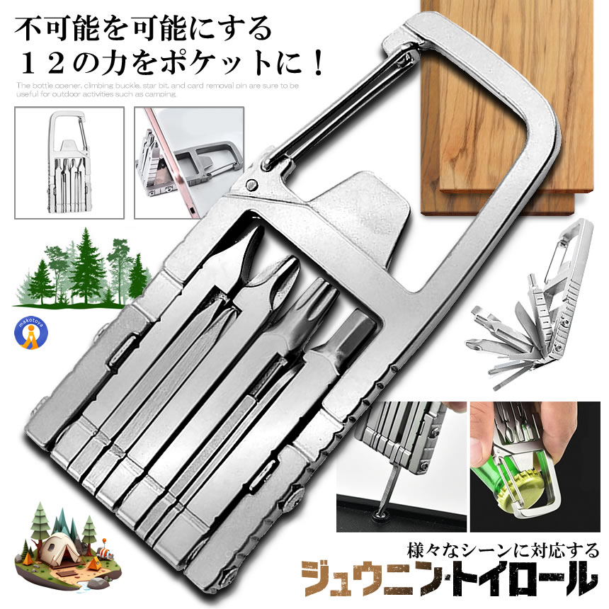 12in1 マルチツール ステンレス 工具 ポケット 栓抜き ドライバー 定規 スケール 便利 USETOOL