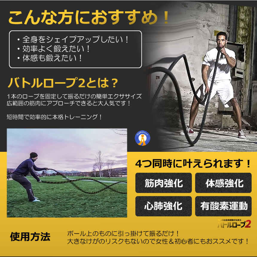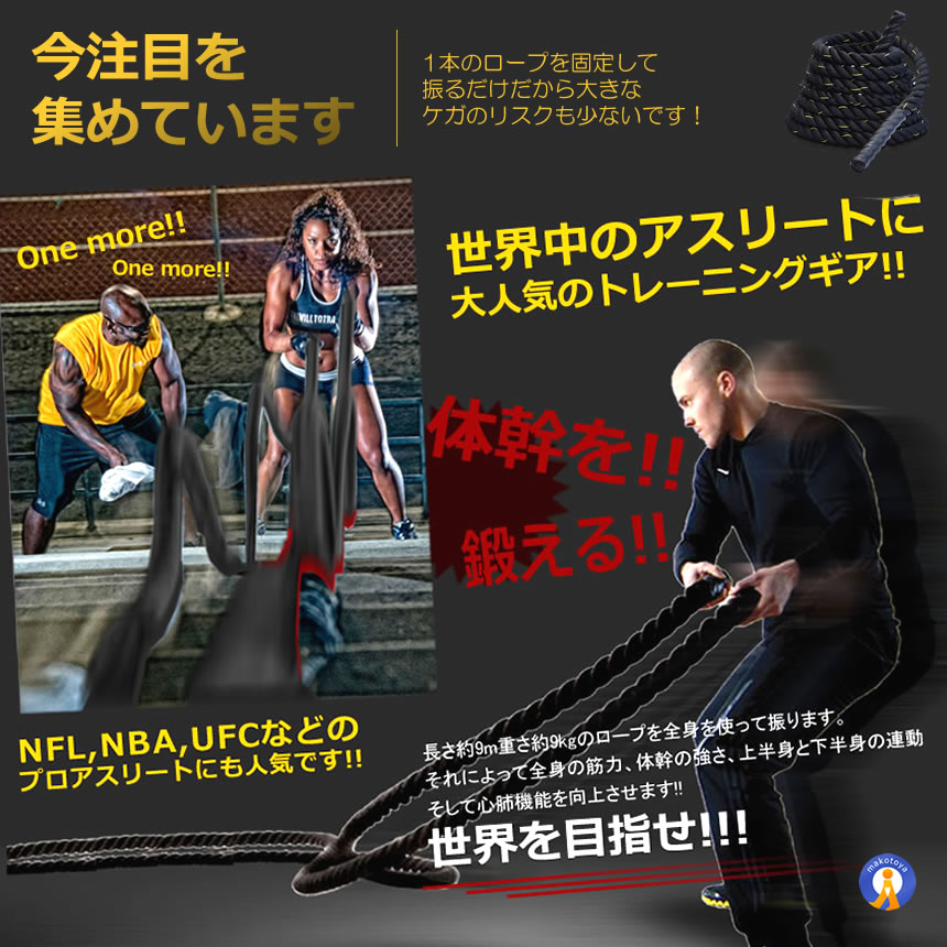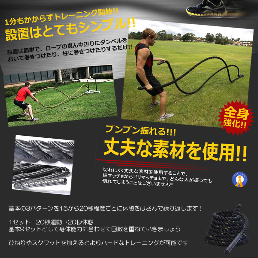 バトルロープ 2 トレーニング ロープ 筋トレ ロープカバー付属 極太 なわとび ジムロープ 35mm×9m POWERROPE