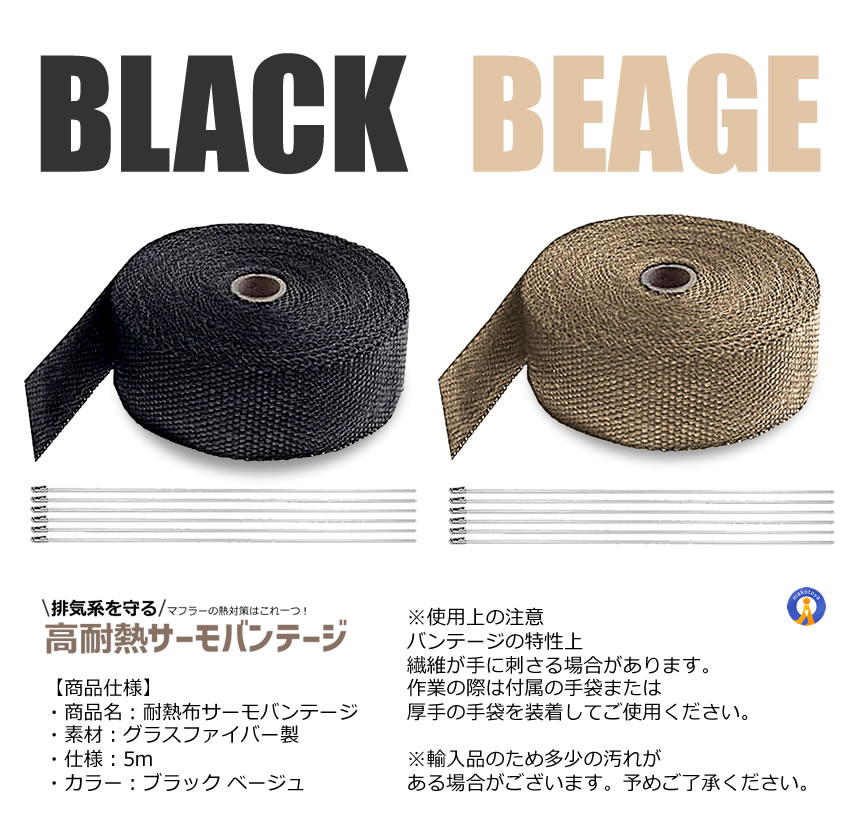 耐熱布 サーモ バンテージ 高品質グラスファイバー 耐熱温度1600℃ エキマニ エキゾーストラップ STRAP