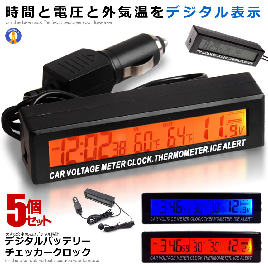 5個セット 電圧計 デジタル バッテリーチェッカー 時計 温度計 シガーソケット 車内 屋外 車 クロック 時間 カスタム ドレスアップ 車内 内装 パネル DEASHANA