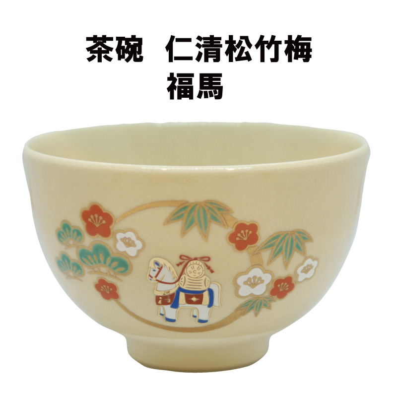 茶道具 抹茶茶碗 仁清松竹梅福馬 午 馬