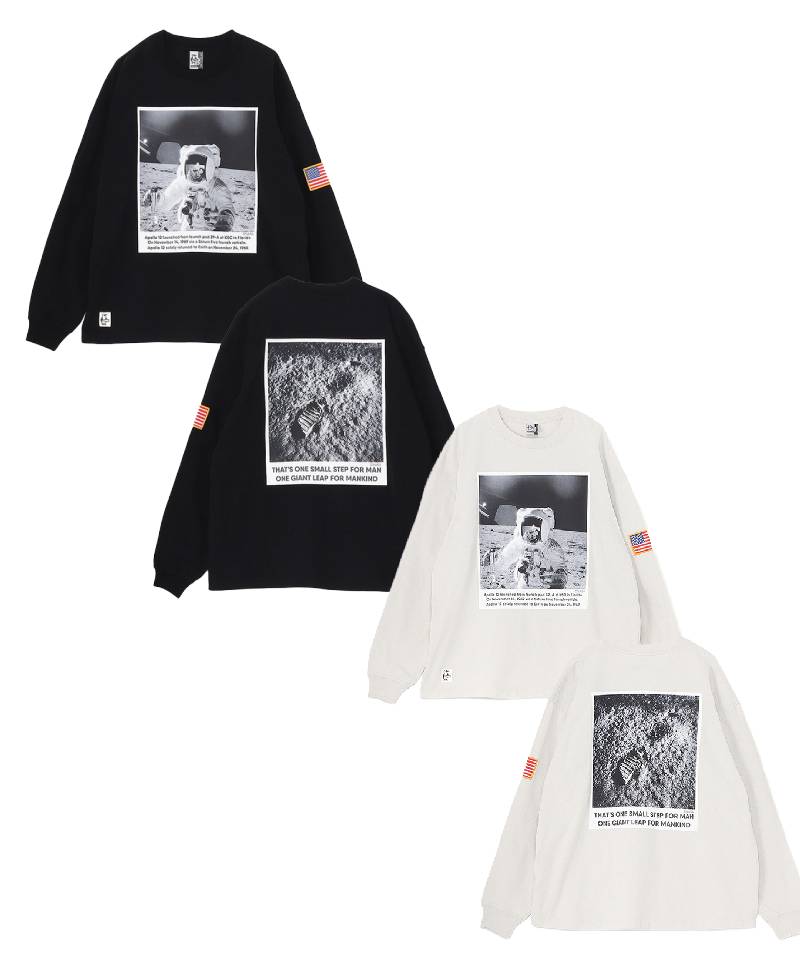 アポロ11号の月面着陸写真をあしらった、ロマンあふれるロングスリーブTシャツ