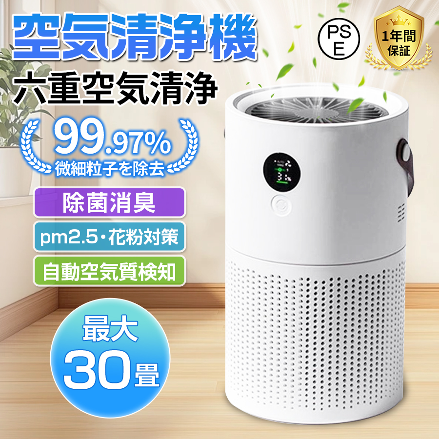 空気清浄機 ポータブル 小型 HEPAフィルター マイナスイオン ほこりセンサー 3段階風量 充電式 USB コンパクト 卓上 30畳 タイマー PM2.5 ほこり 花粉対策