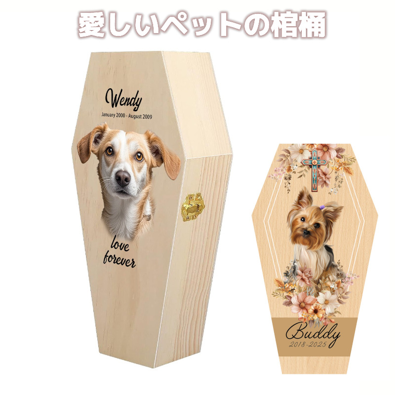 プリント棺桶 印刷 色褪せない 葬式 ペット霊園 納骨堂 飾る 棺桶 ペット用 骨壷 子猫 子犬 鳥 棺 無垢材 火葬 葬儀 写真プリント 木製棺型ボックス ヒンジ付き