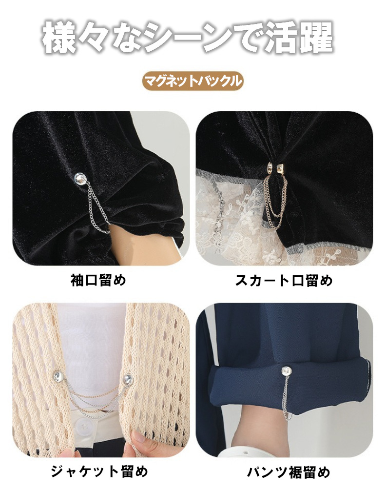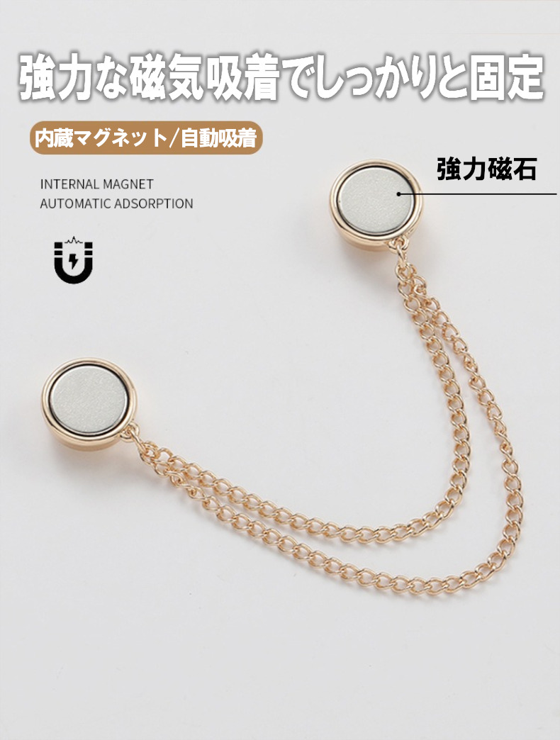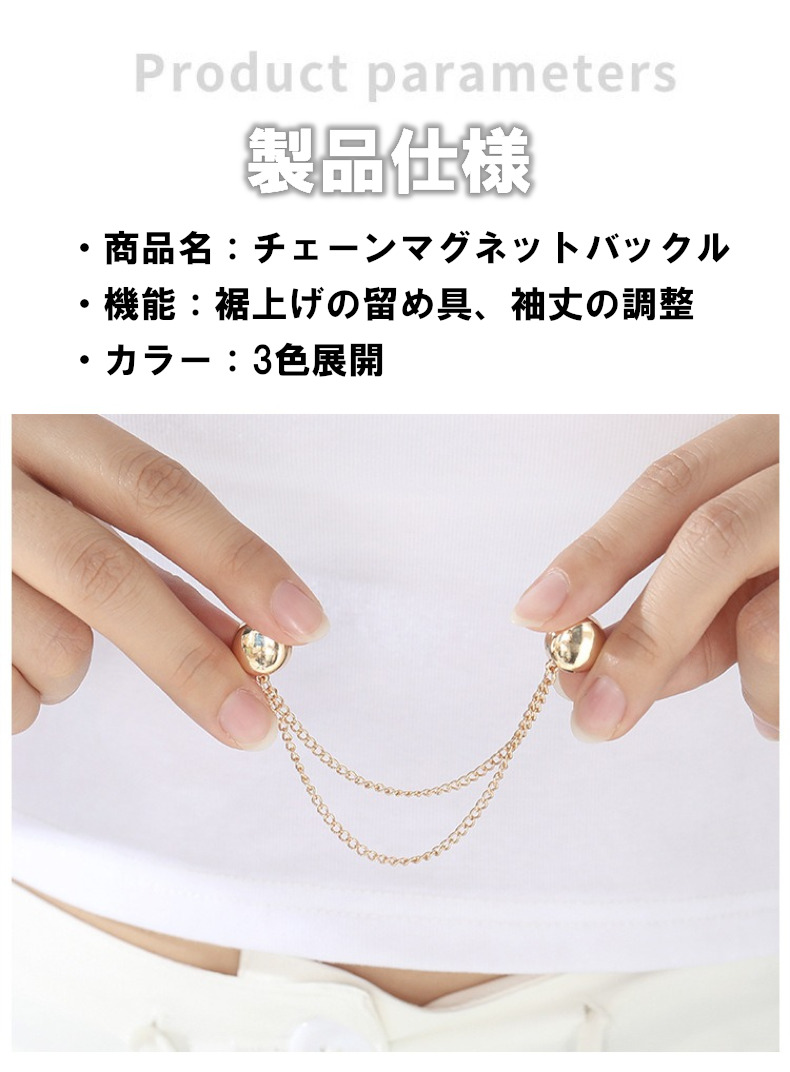 マグネットクリップ 服飾クリップ 縫わずに簡単調整 ズボン 磁石ボタン滑り止め機能 独自の強力磁石留め マグネット式衣類クリップ 調整バックル チェーン