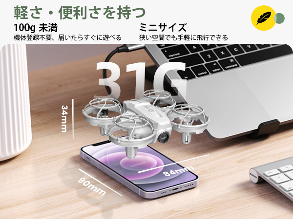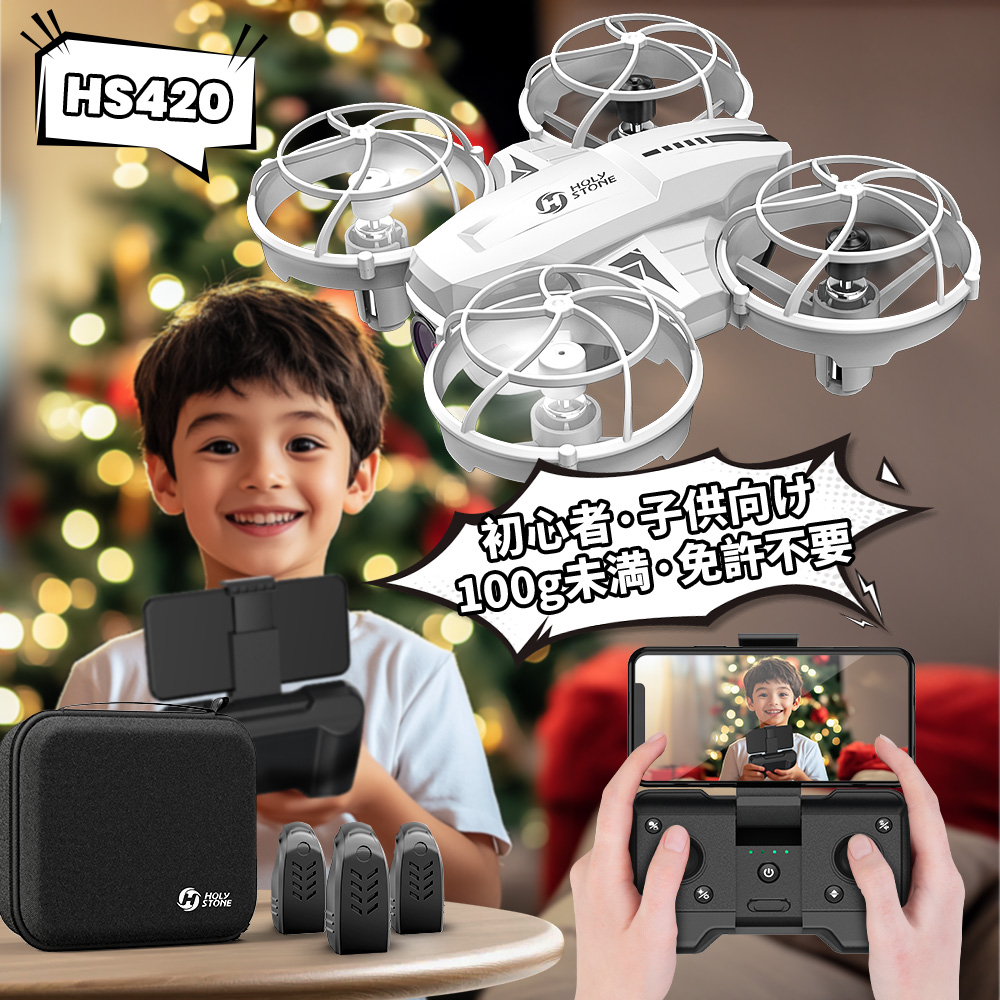 ドローン カメラ付き 免許不要 子供向け Holy Stone 100g未満 初心者向け 手投げテイクオフ 高速旋回 高度維持 2.4GHz モード1/2 国内認証済み HS420 白