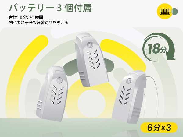 飛行時間:1個約6分(バッテリー3個こ合計18分)
