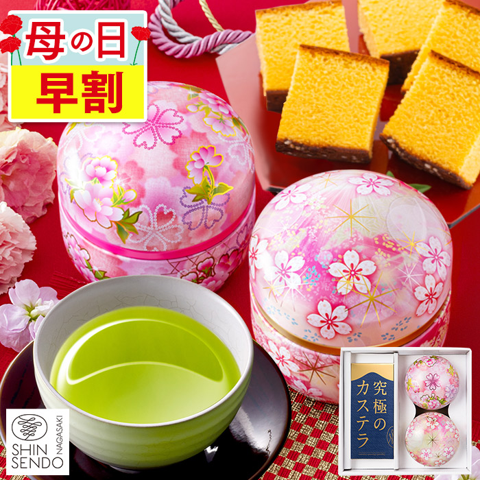 母の日プレゼント2026ランキング(スイーツ・お菓子・和菓子・食べ物・食品)で人気 お菓子セット&日本茶セット。綺麗で高級感あるおしゃれなパッケージは喜ばれること間違いなしです。メッセージカード付き。60代・70代・80代・90代 のお母さん(おかあさん)・母・妻(嫁)・義母・女性 へ、お菓子の贈り物、施設の母の日におすすめ。定番ギフトランキングとして、女性向け 記念品や内祝い、としても人気。カステラはしっとり食べやすい5切れにカット済み、子どもやご年配にもオススメです。記念日・お祝い・お返し・お土産(帰省土産)などにもご利用頂けます。長崎心泉堂(しんせんどう)總本店の長崎カステラは、しっとり、ふんわりの焼き上がりが特徴です。