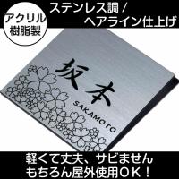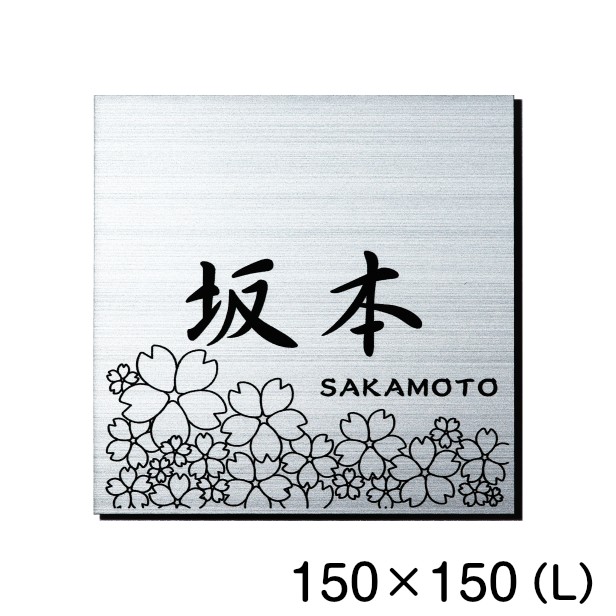 表札 おしゃれ ステンレス調 150×150 L シルバー デザイナーズ 桜 さくら マンション ポスト 外壁 門柱 ネームプレート ドアプレート プレート シール式 銀 デザイン 模様 柄 sakura 看板 玄関 名入れ オーダー 正方形 アクリル製 レーザー彫刻 メール便 送料無料