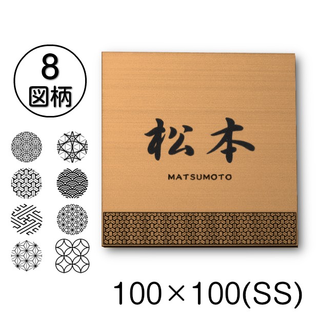表札 風水 開運 縁起の良い吉祥文様入り ネームプレート 銅板風 ブロンズ 100×100 SS おしゃれ 銅 正方形 四角 屋外対応 簡単取付 シール式 メール便送料無料