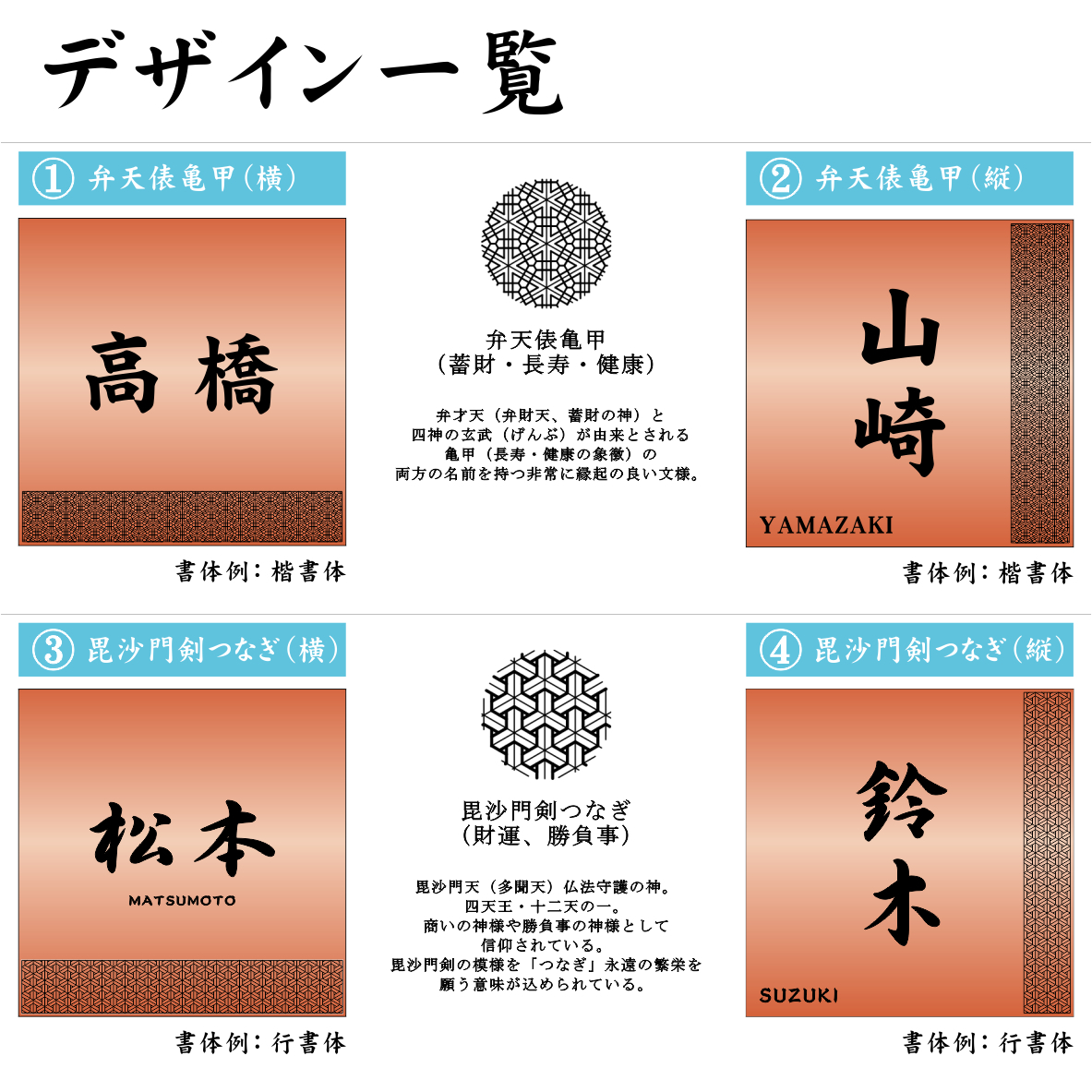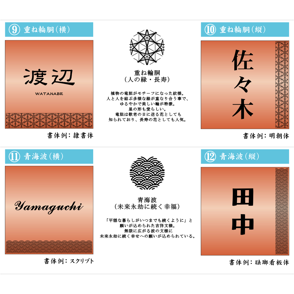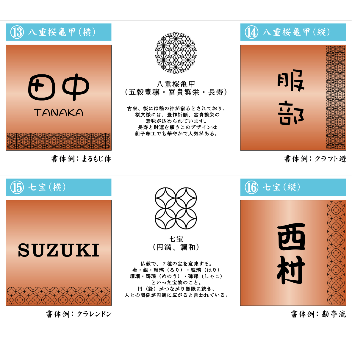 【12書体,16レイアウトから選べる】 縁起の良い吉祥文様を使ったデザイン表札