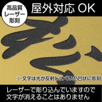 詳細:「現代の名工」松井 美喜夫氏(松井建具店 代表)がデザイン・監修したデザイナーズ表札。真鍮風/ヘアライン仕上げの2層アクリル板にレーザー彫刻にて刻印しています。文字やデザインは彫り込んでありますので、消えたりすることはありません。裏面には強力な両面テープが標準で加工してあり、ツルツルで平らな面への取り付けであれば、屋外でも大丈夫です。ザラザラ、凸凹面への取り付けはボンド固定がオススメです。取り付ける場所のホコリや汚れなどを綺麗に拭き取った後、貼り付けてください。