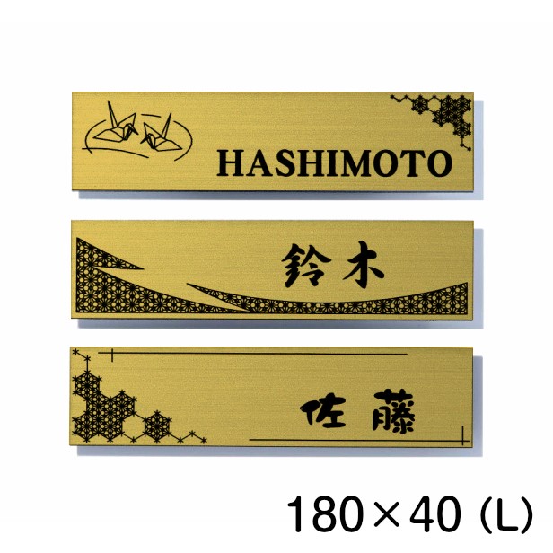 表札 おしゃれ デザイナーズ ステンレス調 180×40 L 真鍮風 ゴールド マンション ポスト 戸建て ひょうさつ 和風 和柄 モダン ネームプレート ドア プレート 看板 玄関 門柱 室名札 シール式 金 伝統 組子 アクリル製 レーザー彫刻 長方形 メール便 送料無料