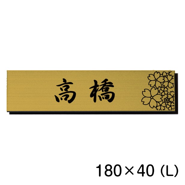 表札 おしゃれ ステンレス調 180×40 L 真鍮風 ゴールド デザイナーズ 桜 さくら マンション ポスト 外壁 門柱 ネームプレート プレート シール式 金 デザイン 模様 柄 sakura 看板 玄関 名入れ オーダー 長方形 アクリル製 レーザー彫刻 メール便 送料無料