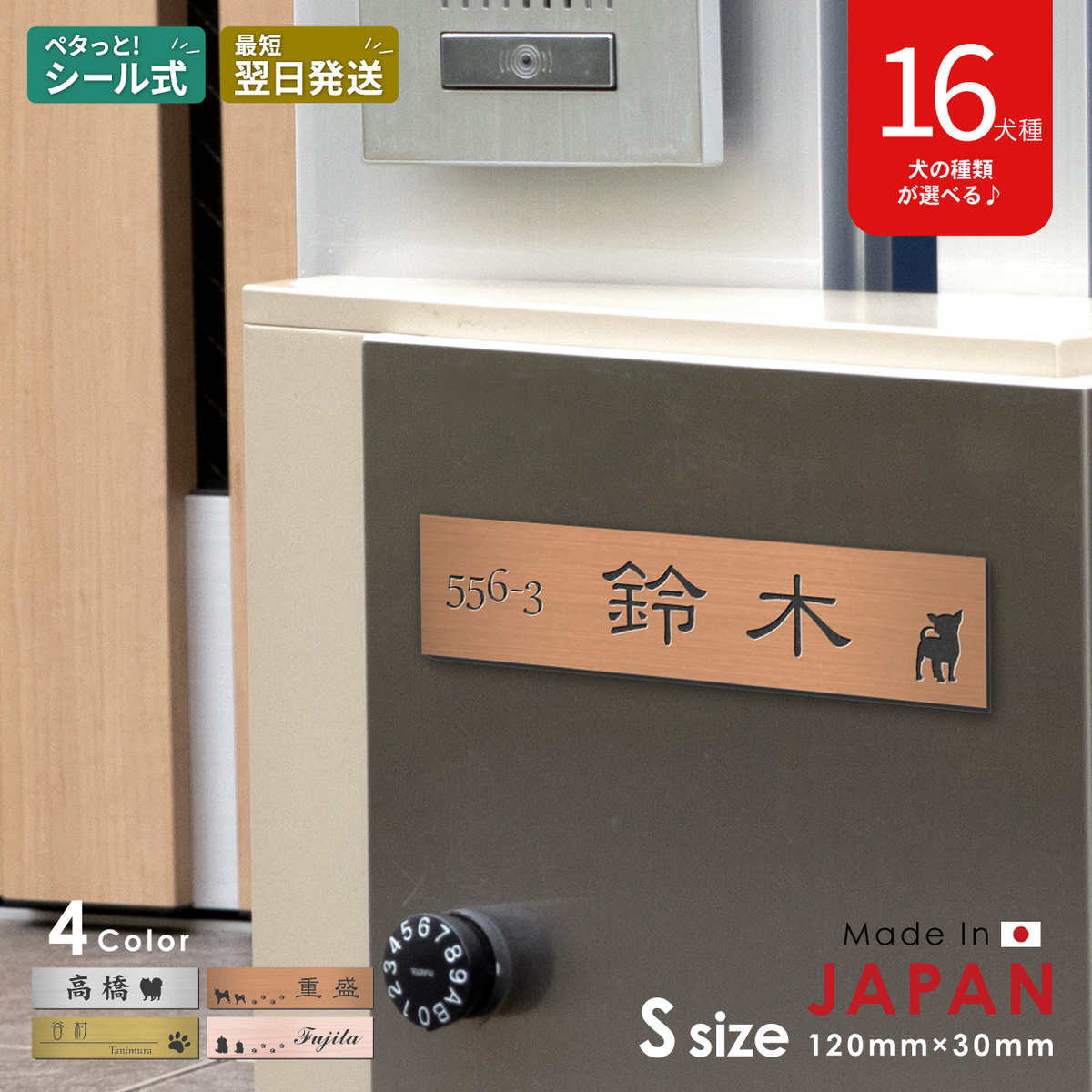 表札 犬 銅板風 ブロンズ 120×30 S トイプードル チワワ ダックス 柴犬 シュナウザー フレンチブルなど いぬの表札 銅 屋外対応 シール式 メール便送料無料