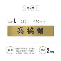 表札 犬 ステンレス調 180×40 L 真鍮風 ゴールド マンション ポスト 戸建 名前 プードル チワワ ダックスフンド デザイン シール式 プレート ドアプレート ルームプレート おしゃれ ひょうさつ 看板 アクリル製 金 レーザー彫刻 長方形 メール便 送料無料