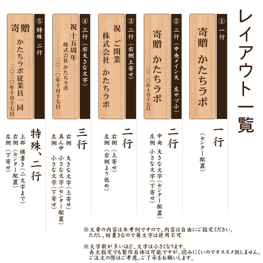 【選べる 11書体 5レイアウト】 木製 寄贈プレート オーダー式 ネームプレート