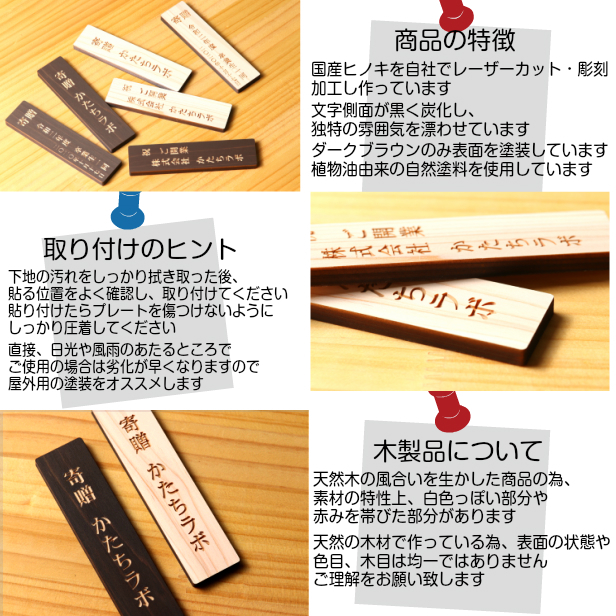 国産ヒノキ(あいち認証材)の表札 カラーはナチュラル、ダークブラウンの2色から選べます