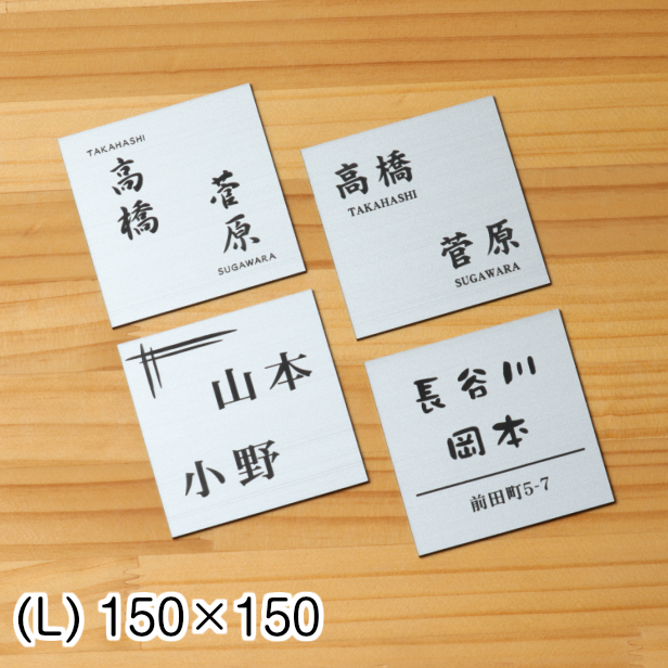 表札 二世帯 150×150 L ステンレス調 シルバー 正方形 四角 二世帯表札 同居 シンプル ひょうさつ ポスト 門柱 外壁 銀色 屋外対応 シール式 メール便送料無料