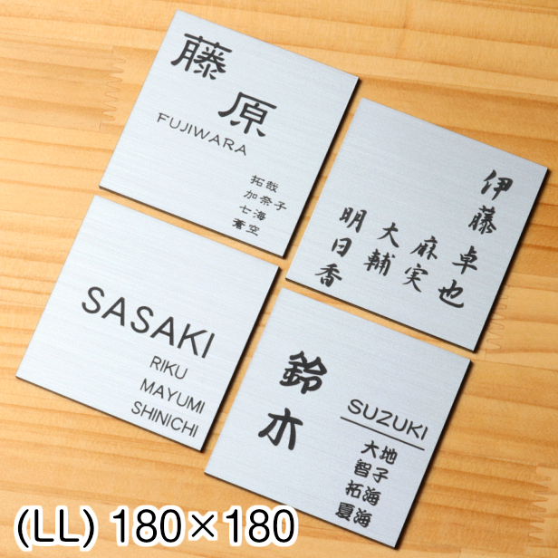 表札 家族名 家族全員の名前が入る表札 180×180 LL ステンレス調 シルバー 正方形 四角 ネームプレート 銀色 水濡れOK 屋外対応 シール式 メール便送料無料