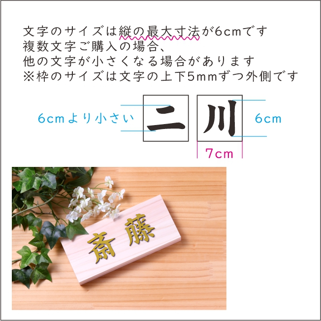 ※複数文字ご購入の場合、一番縦幅が大きいサイズが6cmになります。