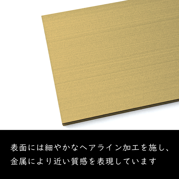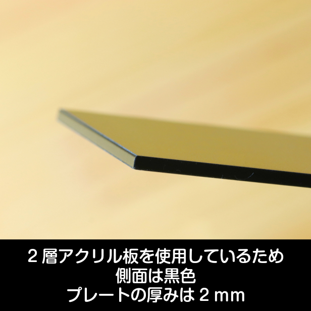 二層アクリル板を使用しているので、 表面はゴールド、側面は黒色で立体的な陰影を強調します