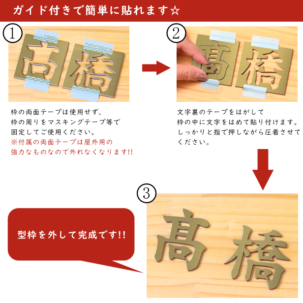 切文字 表札 6cm 漢字 ひらがな カタカナ (楷書体) ゴールド 真鍮風 切り文字 取付 ガイド 枠付き 名入れ 文字 1文字から買える おしゃれ オーダー 会社 オフィス 店舗 看板 ドアプレート シール式 金 アクリル製 屋外対応 新築祝 結婚祝 【メール便 送料無料】