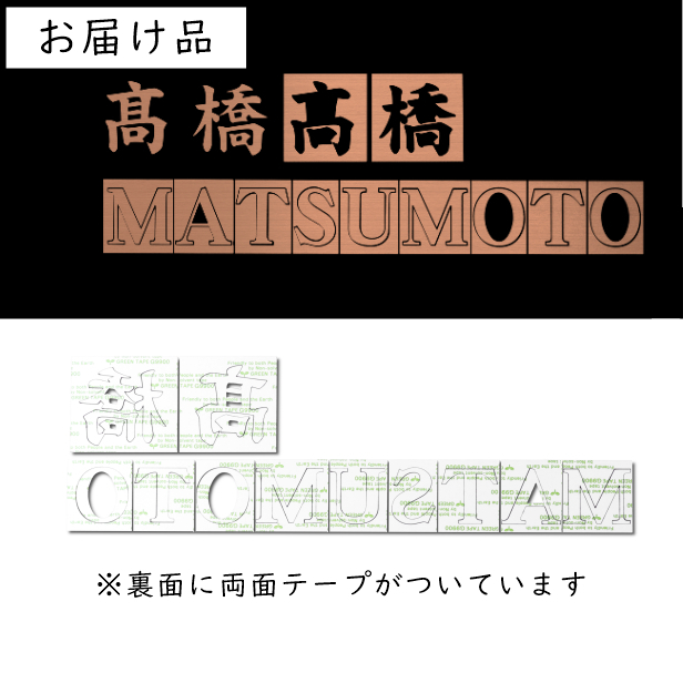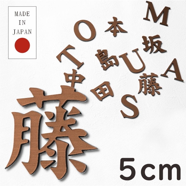 切り文字 表札 看板 5cm 漢字 ひらがな カタカナ アルファベット 数字 (楷書体) 銅板風 ブロンズ 抜き文字 アイアン風 屋外対応 シール式 メール便 送料無料