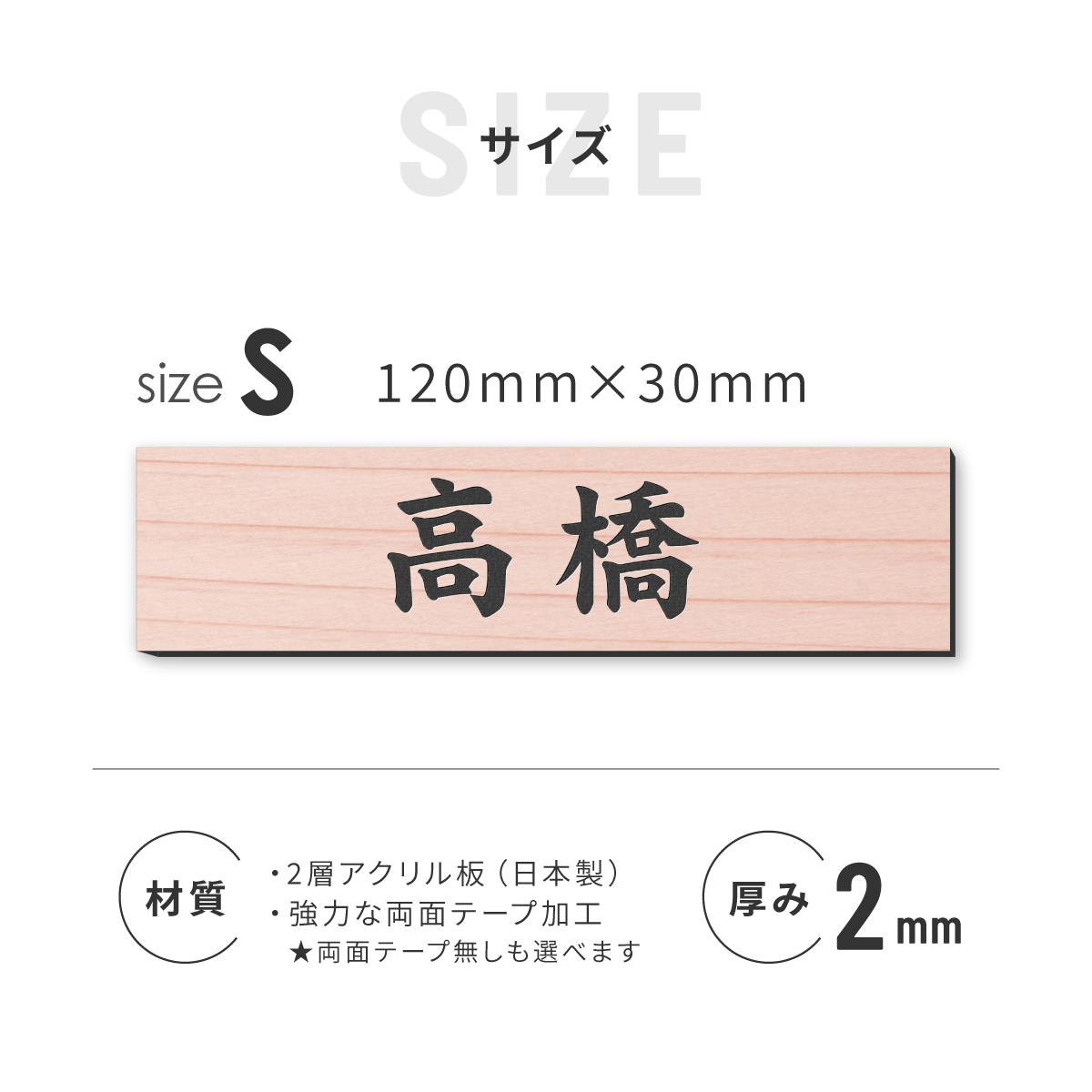 表札 木目調 120×30 S ウッド調 フェイク マンション ポスト オーダー ドア 戸建 シール式 寄贈 プレート ネームプレート ドアプレート おしゃれ ひょうさつ 門柱 外壁 アクリル製でいつまでもきれい レーザー彫刻 屋外対応 耐久 日本製 メール便送料無料