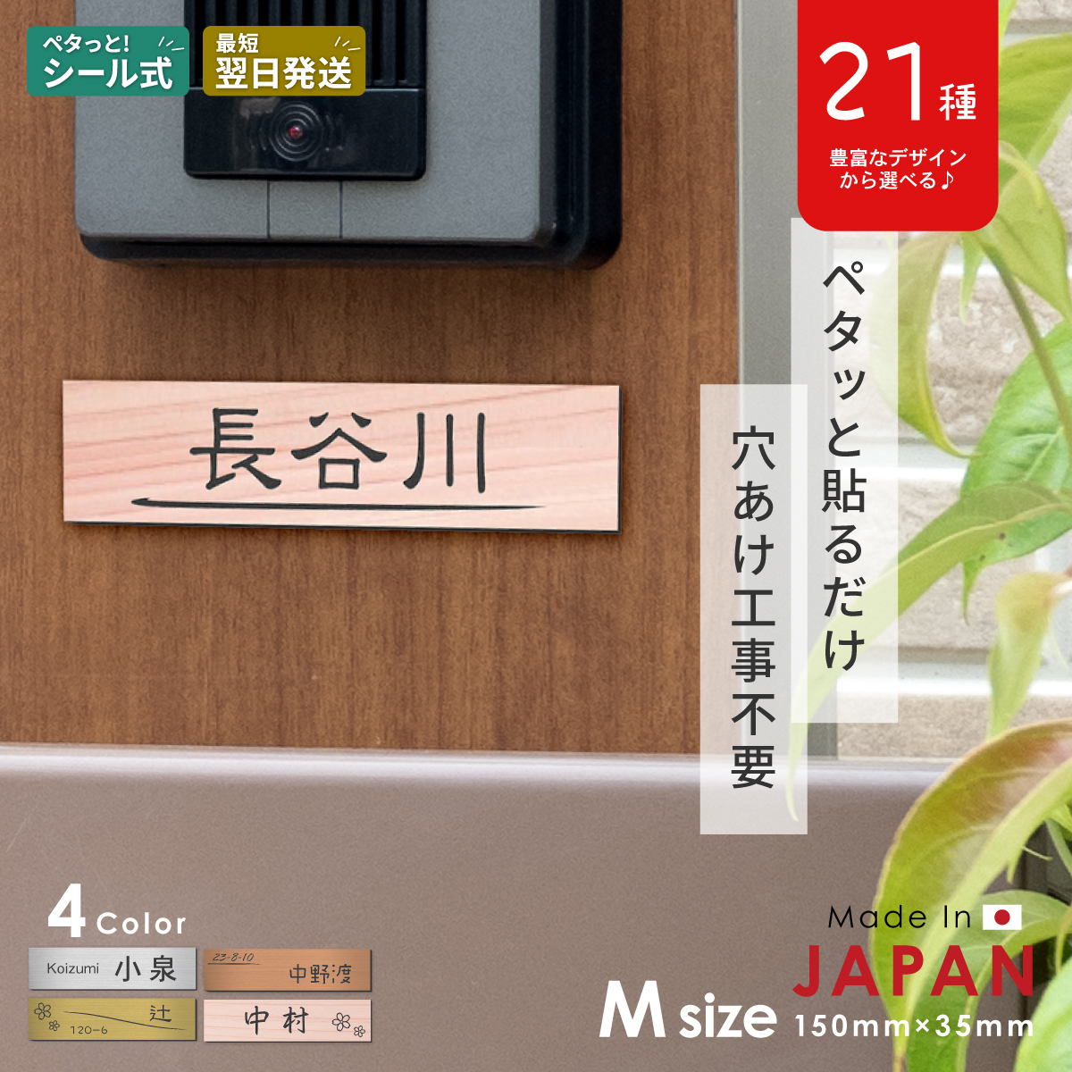表札 木目調 フェイクウッド 150×35 M ウッド調 本物の天然木のように見えるネームプレート 軽くて丈夫 屋外対応 簡単取付シール式 日本製 メール便送料無料