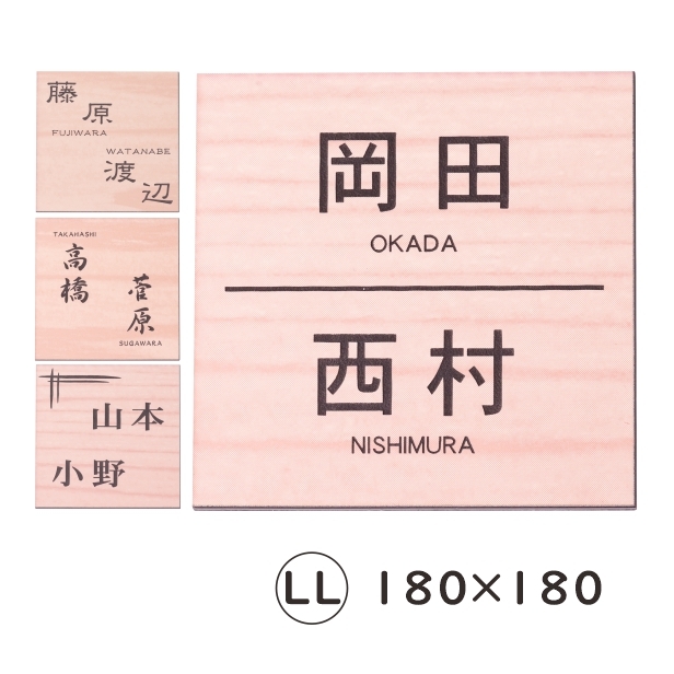 表札 二世帯 木目調 フェイクウッド 180×180 LL ウッド調 二世帯表札 本物の天然木のように見えるネームプレート 屋外OK 簡単シール式 日本製 メール便送料無料