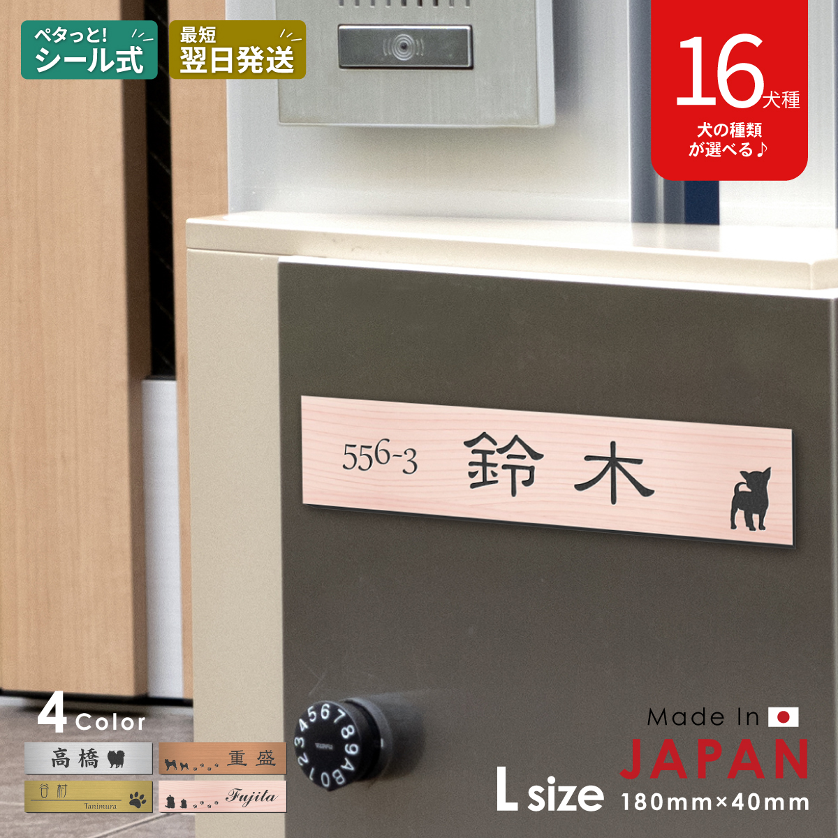 表札 犬 木目調 フェイクウッド 180×40 L ウッド調 プードル チワワ ダックス 柴犬 シュナウザー フレンチブルなど 屋外対応 シール式 日本製 メール便送料無料