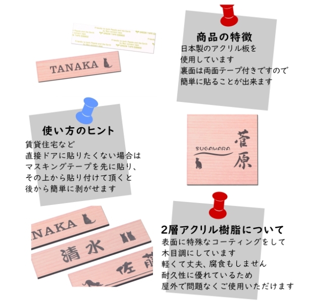 戸建て表札、マンション表札、アパート表札、ポストプレート用などに最適。 木製の表札を付けたいけれど、色落ちや劣化が心配・・・という方におすすめです! |