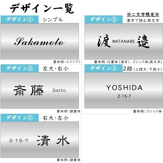 【12書体 5デザインから選べる】 シンプルなオーダー式表札